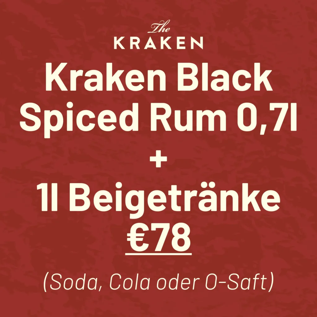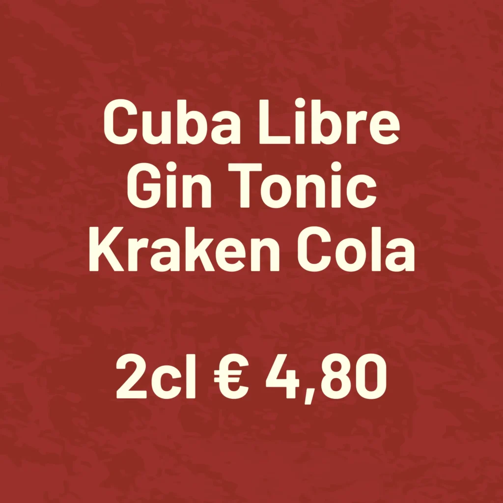 | Kraken Cola Kraken Black Spiced Rum, Cola | € 4,80 | € 8,10 |